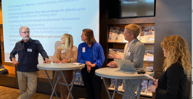 Seminariet inleddes av Carolina Kihlström, verksamhetschef på Maritimt Forum, som berättade om Maritimt Forums verksamhet. Därefter tog Julia Christensson från Göteborgs Hamn vid med en presentation om dagens och morgondagens finansieringsmöjligheter för grön sjöfart. Julia informerade om bland annat Klimatklivet, Energimyndighetens utlysning som öppnar i december 2025, Vinnova, där utlysning för planeringsbidrag stänger den 10 september 2025, Interreg, CEF- och Innovation Fund samt Horizon, där kommande ramprogram släpps sent 2025 och utlysningar öppnar löpande under år 2026. Julia avslutade med reflektioner där hon bland annat menade att det behövs en helhetssyn på branschen från utlysande parter, att finansiering i hamnar och fartyg behöver matcha för att omställning ska bli effektiv samt att svensk fond för sjöfarten behövs med riktade medel, systemtänk och hög kompetens.